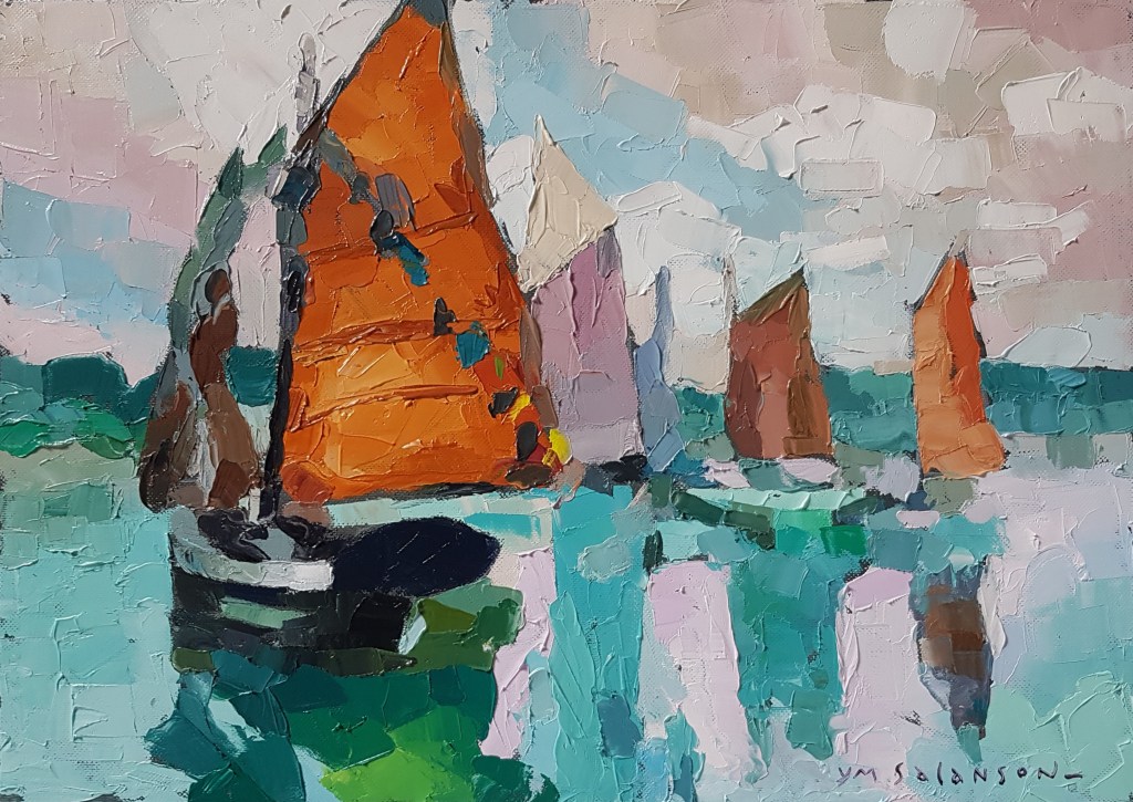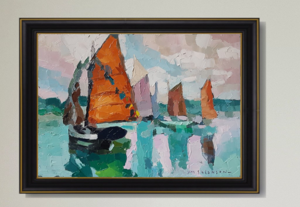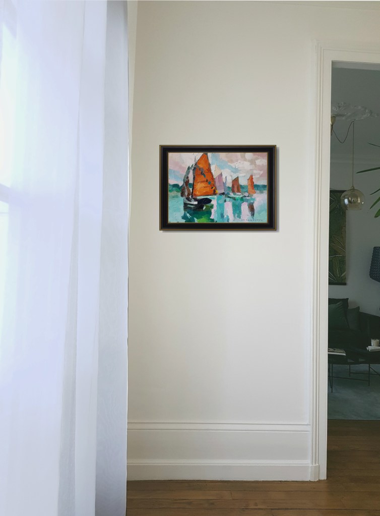 Ce toile est avant tout un travail de lumière. Les détails sont volontairement mis de côté pour aller à l’essentiel. L’accent est mis sur l’ambiance générale, la lumière, la capacité à suggérer ce paysage marin avec une peinture dynamique et appliquée à coups de larges touches colorées.