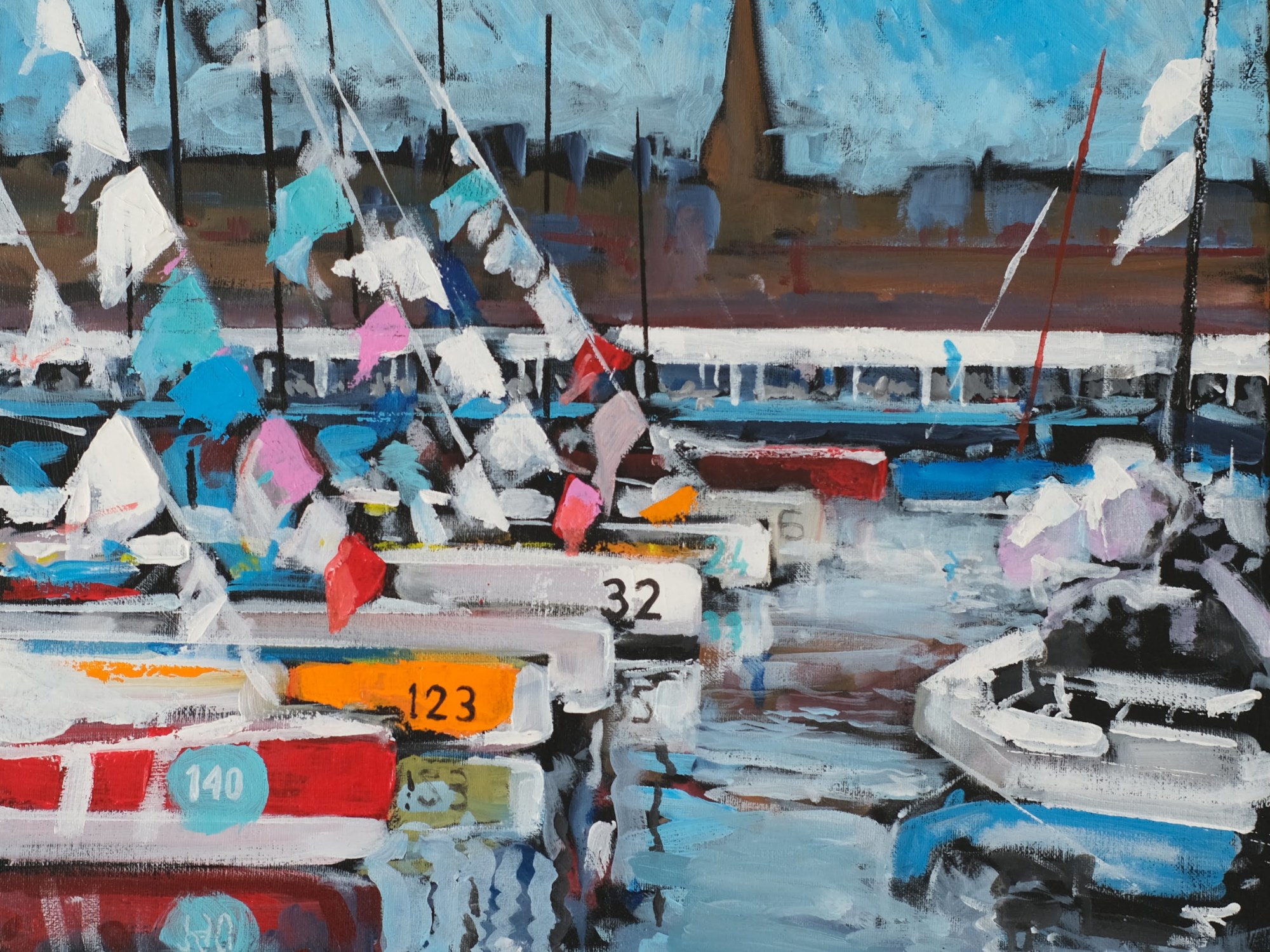 Les bateaux de la cours de rhum attendent patiemment le départ dans le bassin Vauban au pied des remparts de Saint-Malo, offrant ainsi un spectacle multicolore aux milliers de promeneurs venus les contempler.